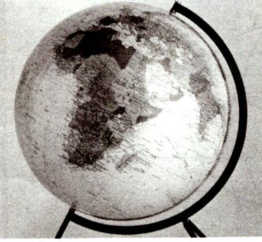 s’appuyant sur ce globe en passant par trois épingles plantées en N ;