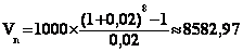 demande de calculer Vn, connaissant : a = 1000 €, t = 0,02, n = 8.