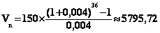 demande de calculer Vn, connaissant : a = 150 €, t = 0,004, n =3 ans
