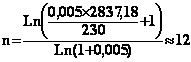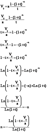 ce cas, on demande de calculer n connaissant Vn = 2837,18, t =
