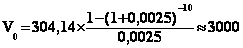 vaut calculer le montant de l'emprunt V0 connaissant a = 304,14, t =