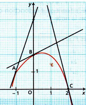que les droites tracées sont les tangentes à C aux points A, B et C, déterminer