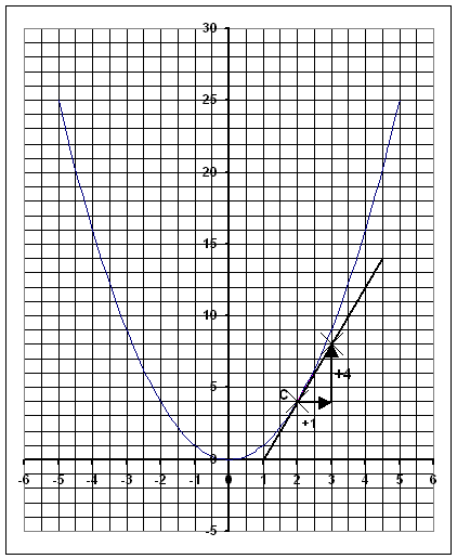 Pour construire cette tangente, on se place au point C( 2; 4 ).