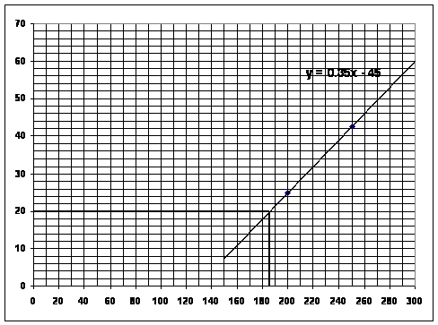 pour : x = 200 : ¦(200) = 0,35´200-45 = 25 pour x = 250 : ¦(250) = 0,35´250-45 = 42,5