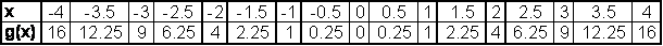 valeurs de g(x)
