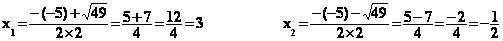 calcule D = b²-4ac = 5² - 4´2´(-3) = 25 + 24 = 49