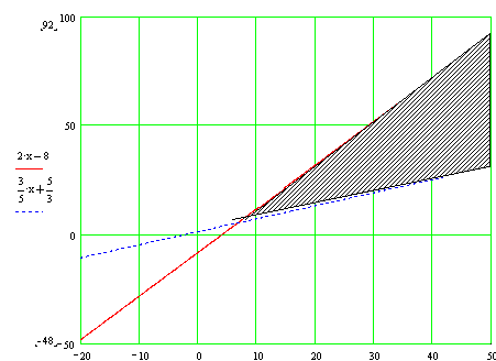 constate donc graphiquement que cette zone commence au point d'intersection des