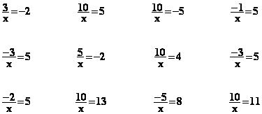 – x = 8 15 - x = 60 -5-x = -20 -13 - x = 13
