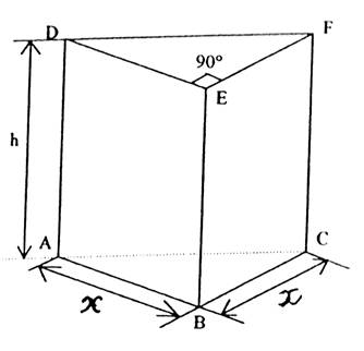 Calculer la hauteur du prisme lorsque x = 6 cm et V = 144 dm3 |