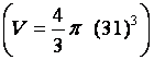 Calcul de « V » , en centimètres cubes , pour R = 2,5 cm