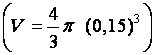 Calcul de « V » , en centimètres cubes , pour R = 0,15 cm