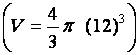Calcul de « V » , en centimètres cubes , pour R = 12 cm