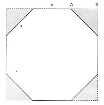 octogone régulier de côté "x". a) Sachant que chaque triangle hachuré est un triangle rectangle isocèle