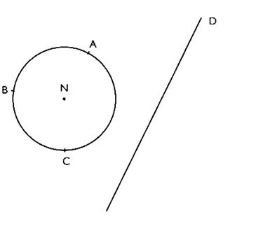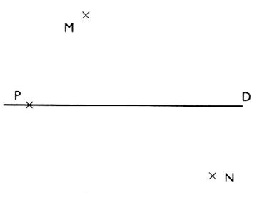 et tracer un trait coupant la droite , à l’opposé de M , pour