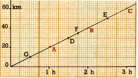 base : sur « x » 1h = 2 cm ; sur « y » 20 km = 1 cm )