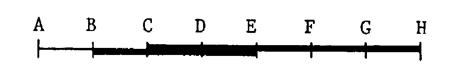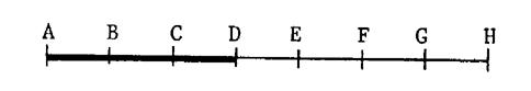 On vous donne un segment [ A H ] qui a été partagé en 7 segments de même