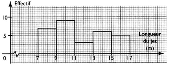 On a relevé les performances des 30 élèves d'un même groupe en lancer du