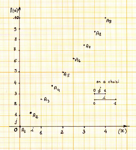 graphique de x² avec i = 1cm et j = 0,5 cm