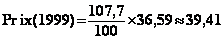 de 1999 des quantités en 1995 de chaque produit sur la somme des prix de