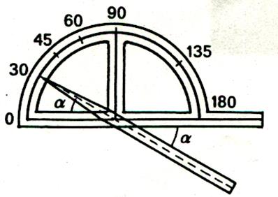 sommet de l’angle xOy à mesurer , superposer Ox et OA . On lit alors en regard du côté OB la mesure cherchée . |