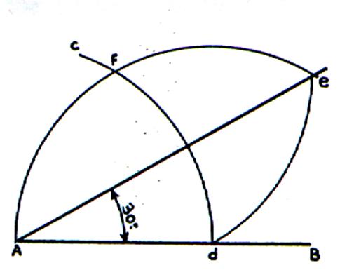 ·      Tracer un arc de centre « d » passant «  A »   « » « e » ; placer la lettre « f »
