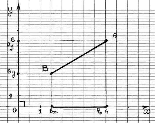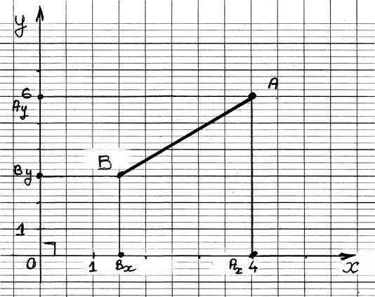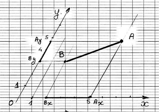 3° ) Soit un repère orthonormé ( à compléter): tracer les projections du segment AB ; donner les coordonnées des deux