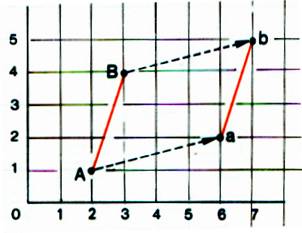 Un déplacement de 4 pas à droite et 1 pas en haut est codé 4d 1h Si le point A va en « a » A !’ 4d 1h!’ « a » Si le point B va en « b » B !’ 4d 1h!’ « b » Les deux points ont le même déplacement. AB = ab |