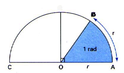 angle au centre qui intercepte un arc de cercle de longueur « r »