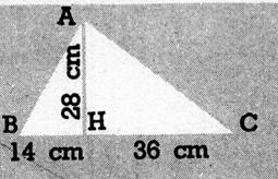 28 cm fois 7 cm = 196 cm² triangle AHC = 28 cm