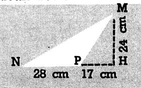 façon 1 : Aire du triangle NMP : triangle NMH : ( 28 cm + 17 cm ) 24 cm : 2 = 540 cm² triangle MPH :