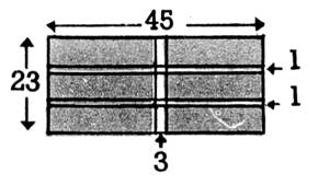 « d »; 3°) en retranchant la surface du rectangle « e » de celle du rectangle « enveloppant » ABCD. |