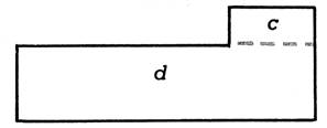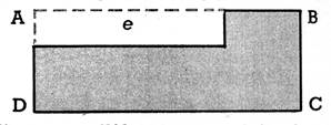 « d »; 3°) en retranchant la surface du rectangle « e » de celle du rectangle « enveloppant » ABCD. |